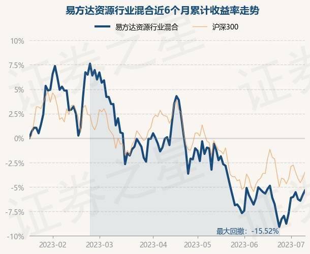 7月11日,易方达资源行业混合最新单位净值为1.17元,累计净值为1.17元,较前一交易日上涨0.52%。历史数据显示该基金近1个月下跌0.34%,近3个月下跌5.26%,近6个月下跌5.34%,近1年下跌11.56%。该基金近6个月的累计收益率走势如下图:
