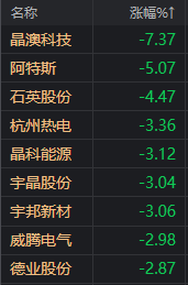 7月12日早盘,光伏板块快速下行,晶澳科技一度逼近跌停,阿特斯、石英股份、中信博、晶科能源、宇晶股份快速跟跌超3%。