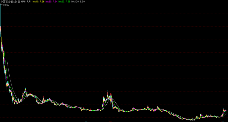 憧憬着中石油有一天会有“万亿利润”的很多股民,急吼吼地冲了进去,然后开始梦想着把股票传给儿子再传给孙子辈。但开盘之后,就没有然后了,中石油股价一路下跌了十几年,最低在2020年10月29日跌到了3.3元/股,投资者亏到怀疑人生,资本市场也留下了“问君能有几多愁,恰似满仓中石油”的凄美传说。