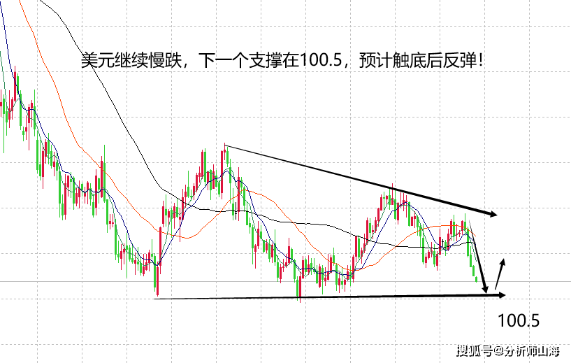 美元在周二表现极弱,走单边慢跌,几乎没有反弹空间,目前跌至101附近,接近前期双底支撑点100.5,这波美元下跌走势较快,自上周从103.2开跌以来,走了三个交易日的下行就出现了大跌空间,日线连阴走出单边,H4周期拉开布林带,使其开口向下,是标准的单边下跌模式,因此,延续目前的弱势,周内下跌空间再看前期双底100.5得失,山海不看好本周美元能跌破100.5强势支撑点,预计市场在借助cpi数据刺激重新走出强势上涨空间。