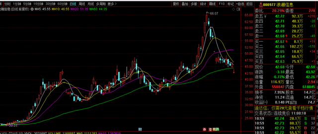 作为AI大牛股,浪潮信息近期走势低迷,股价由6月20日的66元高点,跌至现在的42.7元,跌幅达到35%,缩水了300多亿。