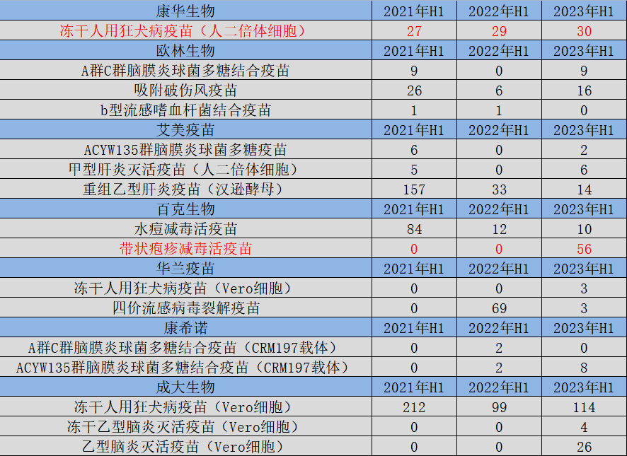 除上述4家公司外,我们也统计了康华生物、欧林生物、艾美生物、百克生物、华兰疫苗、康希诺、成大生物等公司上半年的批签发情况。