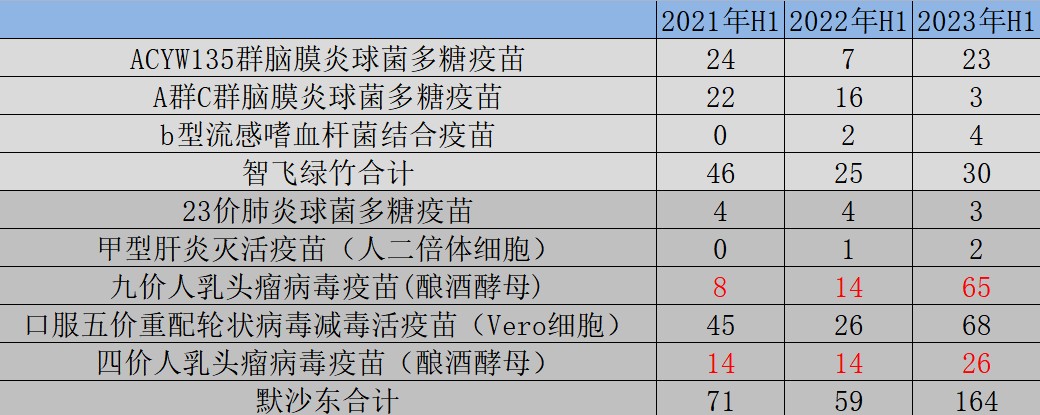 在上半年中,13价肺炎疫苗、23价肺炎疫苗和HPV疫苗分批获批40批、9批和23批,均较2022年同期有明显的增长,尤其是13价肺炎疫苗的“批签发”数几乎相当于2021上半年和2022上半年“批签发”数据的总和。其他产品方面,沃森生物的“批签发”数据也均有明显的复苏。