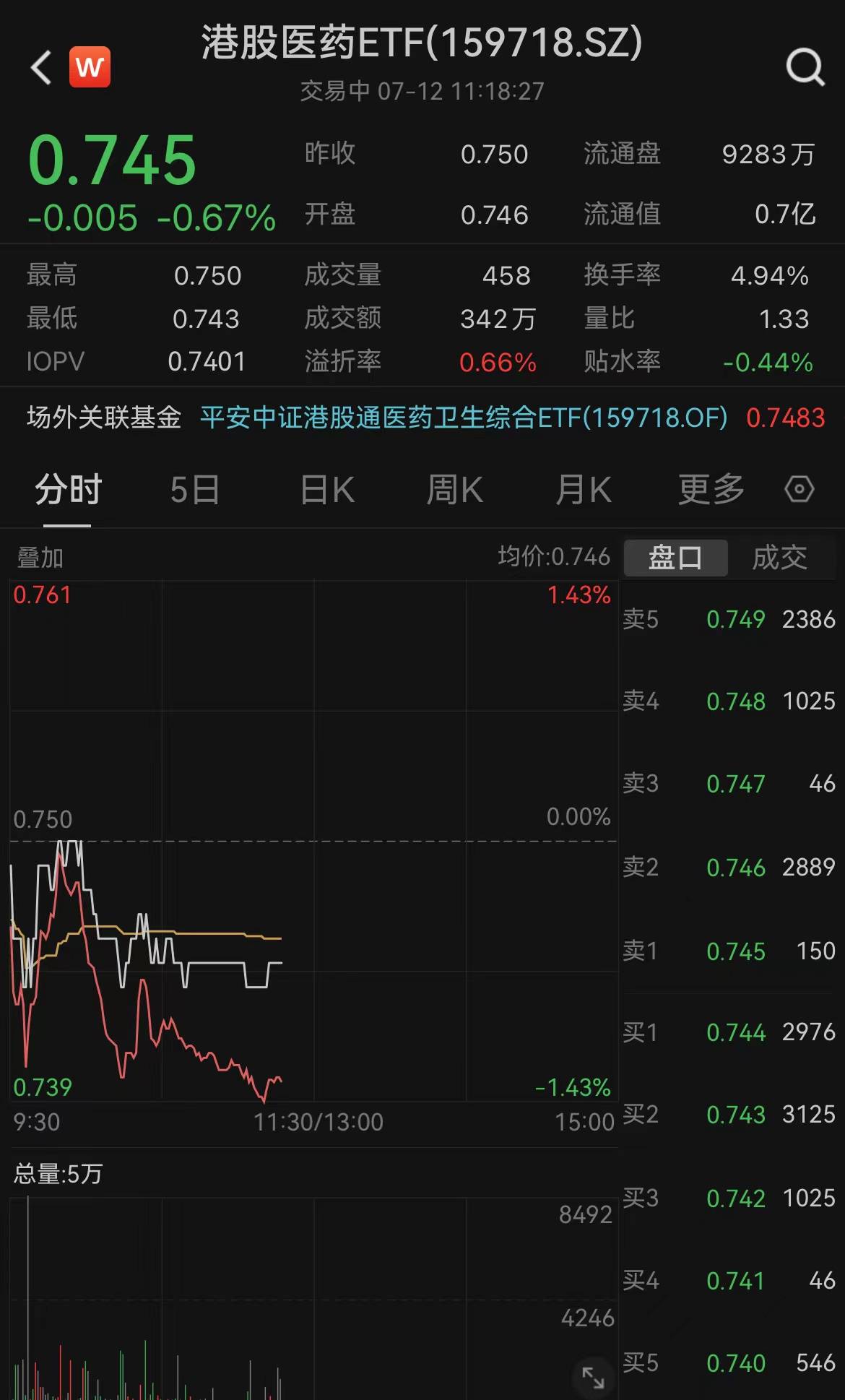 截至发布,中证港股通医药卫生综合指数(930965)下跌0.95%,成分股诺辉健康跌逾11%,心泰医疗、叮当健康、康方生物、微创机器人等多股跟跌。港股医药ETF(159718)下跌0.67%,溢价超0.65%。