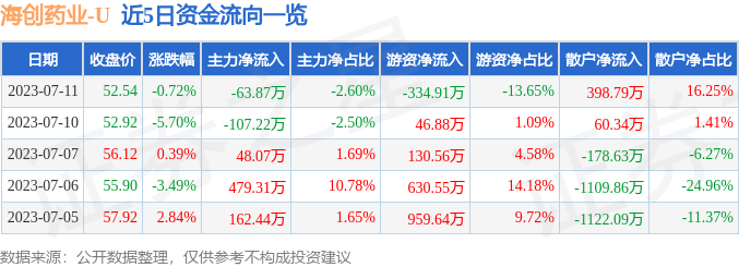7月11日的资金流向数据方面,主力资金净流出63.87万元,占总成交额2.6%,游资资金净流出334.91万元,占总成交额13.65%,散户资金净流入398.79万元,占总成交额16.25%。