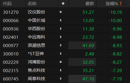 上证报中国证券网讯 7月12日,人工智能概念股震荡下挫。13时42分,汉仪股份跌超10%,华西股份、中国长城跌停,中远海科、浪潮信息等多股跌超8%。