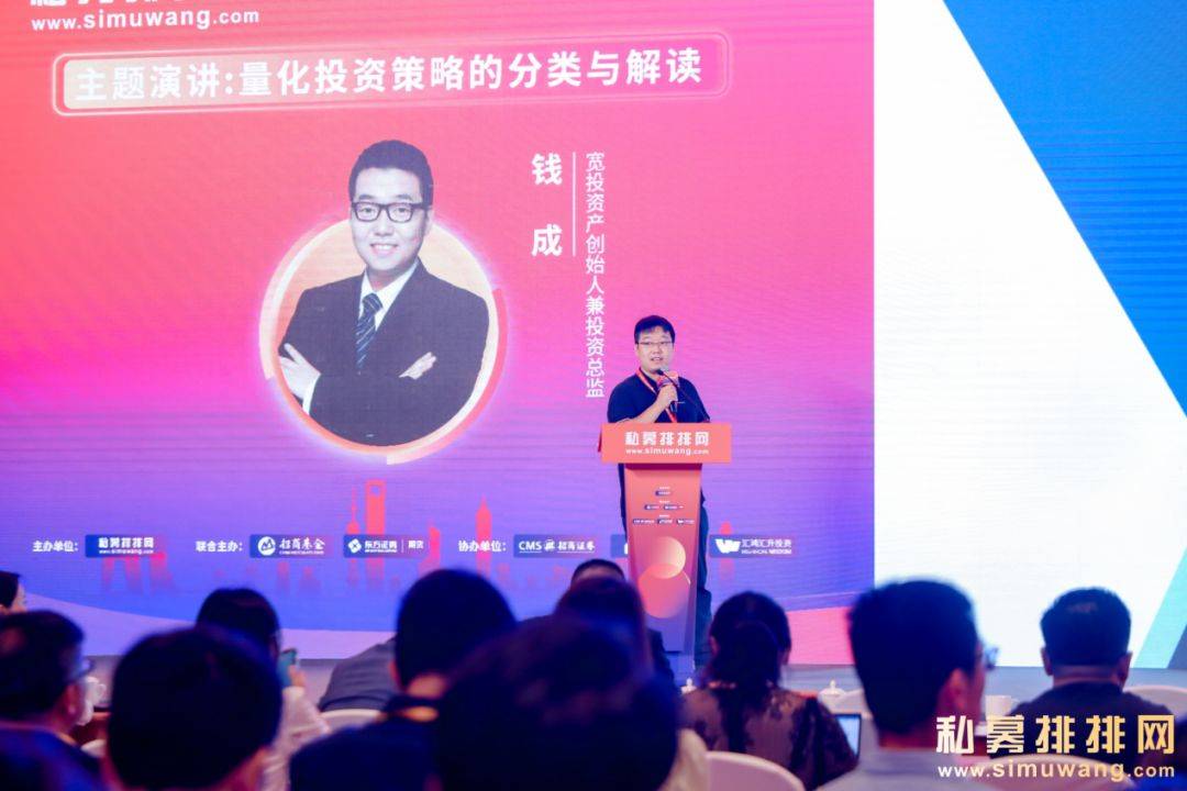 在7月7日的会议上,宽投资产创始人兼投资总监钱成出席并进行了主题为《量化投资策略的分类与解读》的演讲。在会议上,钱成详细的介绍了目前整个量化策略分类的情况,主要是指数增强、CTA、多资产策略,分享了思路及过往经验。