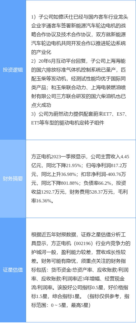 该股为轮边电机,蔚来汽车概念股,国六排放标准概念热股,当日轮边电机概念上涨0.76%,蔚来汽车概念股概念上涨0.15%。