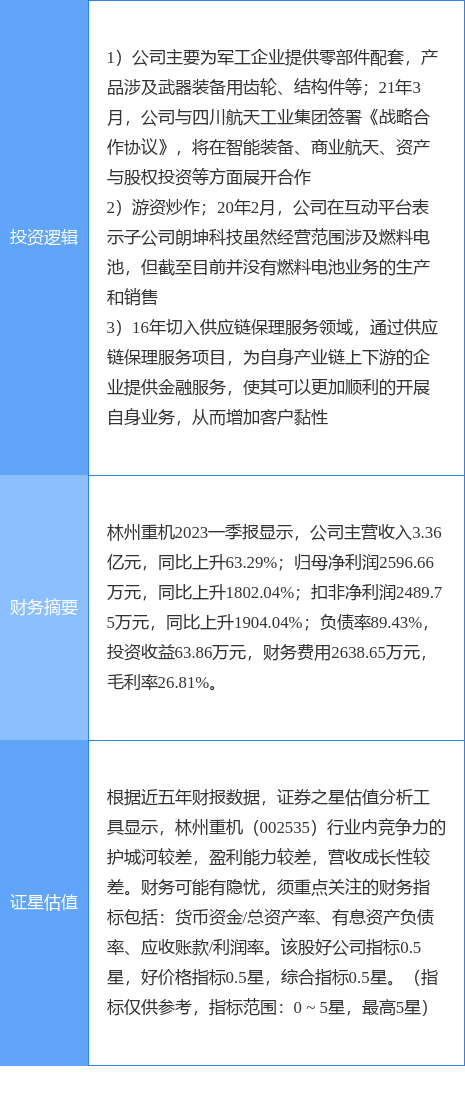 林州重机涨停收盘,收盘价4.85元。该股于9点31分涨停,未打开涨停,截止收盘封单资金为1.44亿元,占其流通市值5.21%。