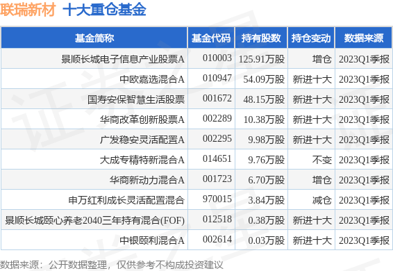 根据2023Q1季报公募基金重仓股数据,重仓该股的公募基金共10家,其中持有数量最多的公募基金为景顺长城电子信息产业股票A。景顺长城电子信息产业股票A目前规模为29.39亿元,最新净值1.1873(7月11日),较上一交易日上涨1.69%,近一年上涨9.94%。该公募基金现任基金经理为杨锐文 张雪薇。杨锐文在任的基金产品包括:景顺长城优选混合,管理时间为2014年10月25日至今,期间收益率为237.9%;景顺长城环保优势股票,管理时间为2016年3月15日至今,期间收益率为209.5%;景顺长城创新成长混合,管理时间为2019年10月17日至今,期间收益率为57.21%;景顺长城成长领航混合,管理时间为2020年5月28日至今,期间收益率为24.72%。张雪薇在任的基金产品包括:景顺长城研究精选股票,管理时间为2023年5月13日至今,期间收益率为8.82%。