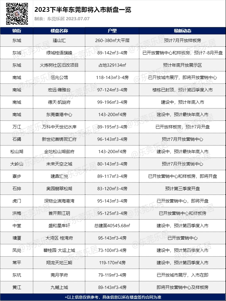 下半年纯新盘情况