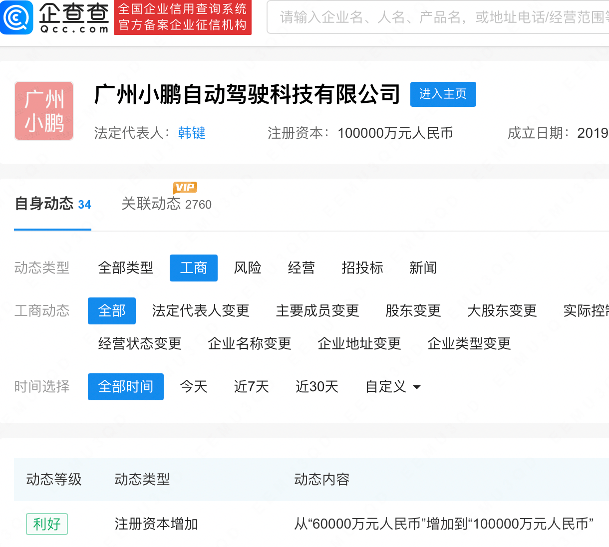 原标题:小鹏汽车自动驾驶公司增资至10亿元