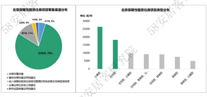 分城市来看,据58同城、安居客整理数据显示,北京“十四五”期间,保障性住房供应占新增住房供应的比例达到52%。其中,保障性租赁住房规划量最高,新增40万套(间),占新增住房供应比例达到40%。根据北京已披露保障性租赁住房项目情况,主要以集体经营性建设用地新建为主,而公寓型产品最多。目前,已披露项目供应集中于需求旺盛区域,如朝阳、丰台、大兴和通州。同时,项目开发主体中,国企和集体所有制企业的项目占比约80%,参与民企主要为聚焦租赁业务的龙湖、城家。