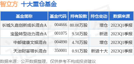 重仓智立方的公募基金请见下表: