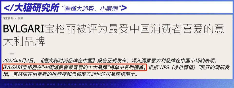 根据时尚媒体的消息,2022年的时候,宝格丽被评为中国消费者最喜爱的意大利品牌。