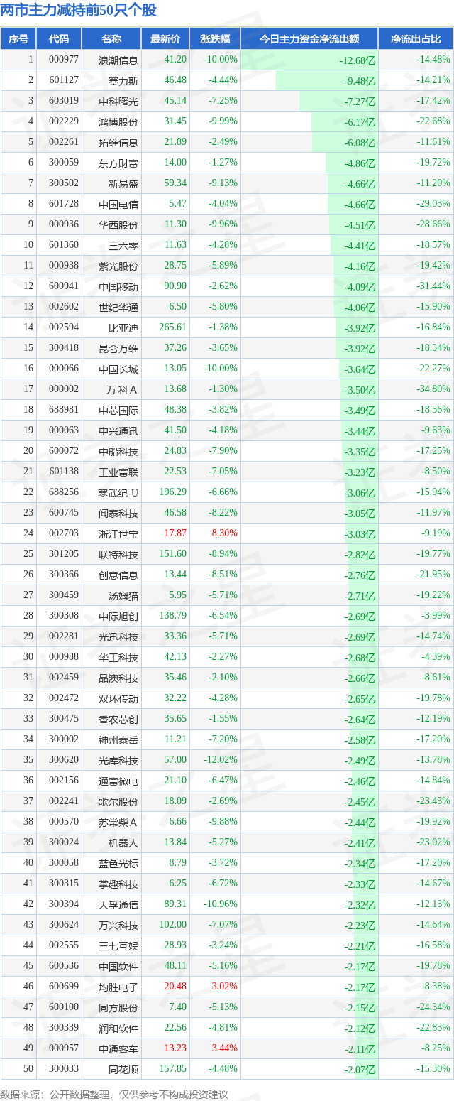 鸿博股份:虽然分单资金中小单净流入比超大单净流出多出近2.5亿元,但此举未能挽救该股的日内弱势,收盘前半小时仍然封住跌停。不仅如此,将统计周期拉长可以发现,该股年初至今虽然借着AI概念成功翻倍,但主力资金却净流出了87亿元。