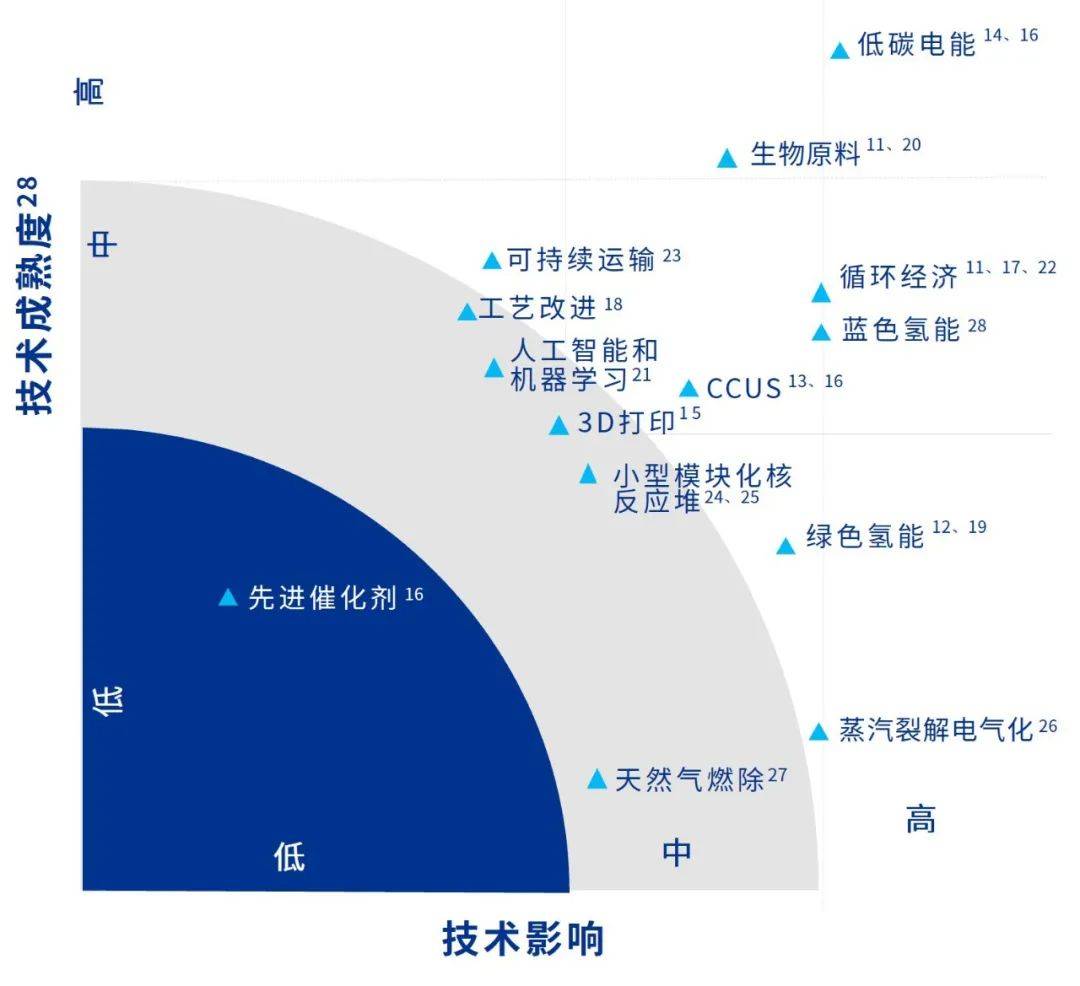 化工行业是最大的工业能源消费行业之一,主要依赖化石燃料获取原料,因此对实现脱碳目标构成挑战。行业需通过自身减排和协助其他行业减排,从而大规模降低燃料及工艺排放。