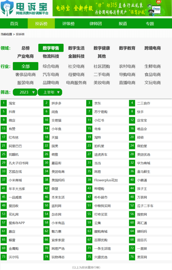 一、76家数字零售平台被投诉 淘宝 国美等被列入典型投诉案例