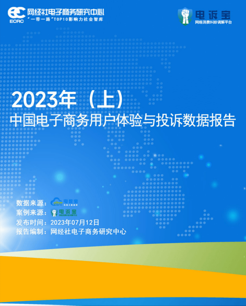 在此背景下,7月12日,依据国内知名网络消费纠纷调解平台“电诉宝”(315.100EC.CN)2023上半年受理的全国200家互联网消费平台纠纷大量案例数据,“一带一路”TOP10影响力社会智库网经社电子商务研究中心发布了《2023年(上)中国电子商务用户体验与投诉数据报告》(报告全文下载:https://www.100ec.cn/zt/2023Stsbg/)。
