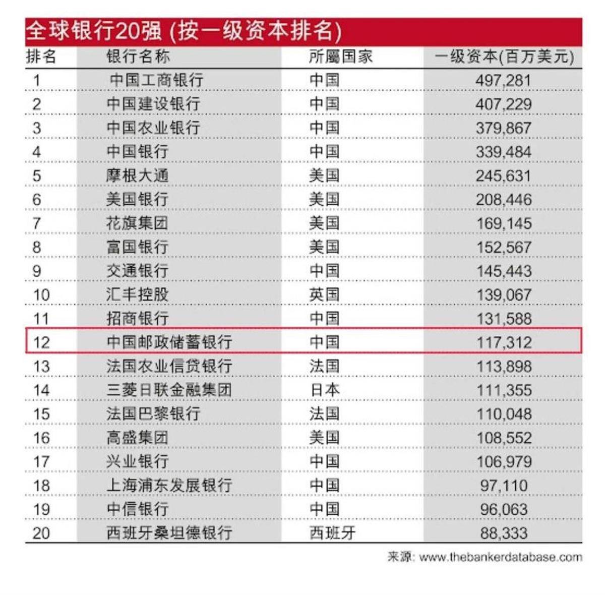 7月5日,英国《银行家》杂志(The Banker)发布了“2023年全球银行1000强”榜单,中国邮政储蓄银行以2022年末一级资本1173.12亿美元位列第12位,较去年上升1位,连续3年进入全球20强。