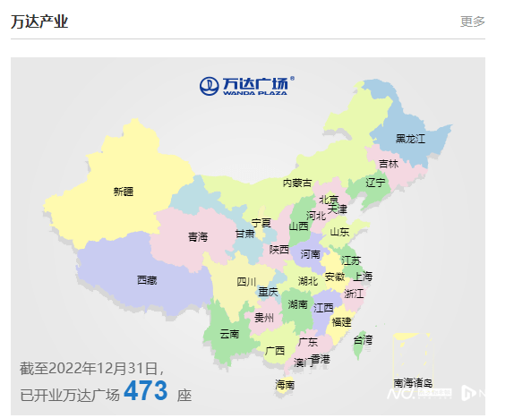 根据万达官网公开信息显示,万达集团创立于1988年,已发展成为以现代服务业为主的大型企业集团,旗下包括商管集团、文化集团、投资集团,其中商业中心、影视、体育、儿童产业等处于世界行业领先地位。截至2022年12月31日,已开业万达广场达473座。