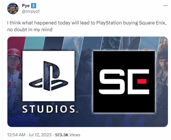 有博主认为,今天发生的事情可能会导致PlayStation去收购SE,有不少网友也表示认同。