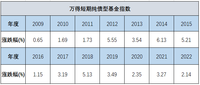 无他,短债基金具备“惊人的稳定性”。Wind数据显示,万得短期纯债基金指数成立至今(2009年-2022年),连续14年均取得了年度正回报。年度回报最高的年份是2014年,年化收益为6.13%。