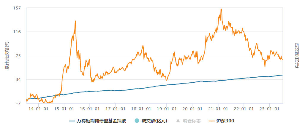 Wind数据显示,截至2023年7月7日,代表短债基金的万得短期纯债基金指数近十年年化波动率仅0.45%,远低于沪深300指数的22.19%。此外,我们也都知道股市和债市之间存在跷跷板效应,两者之间的相关性较低,但有时也会出现同涨同跌的现象。