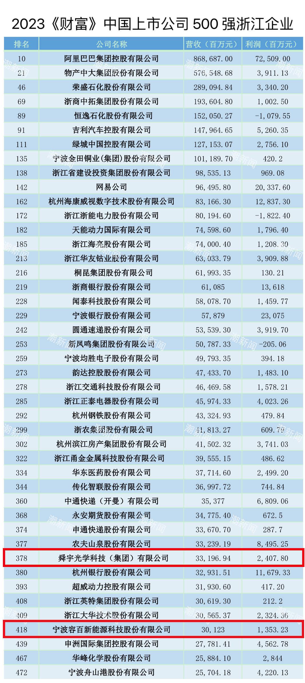 7月11日晚,《财富》杂志公布了2023年《财富》中国上市公司500强排行榜。舜宇光学科技(集团)有限公司、宁波容百新能源科技股份有限公司上榜了!