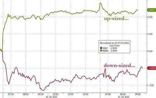 本次调权剑指巨型科技股,包括微软、苹果、Alphabet、英伟达、亚马逊、特斯拉和Meta。在这几家科技巨头的助推下,纳指100今年以来大涨近40%,远高于标普500指数16%的涨幅。