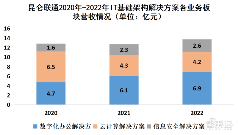 ▲昆仑联通2020年-2022年IT基础架构解决方案各业务板块营收情况(单位:亿元)