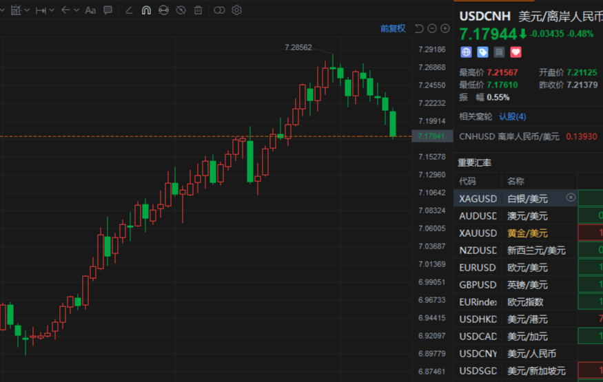 原标题:美元指数跳水,离岸人民币兑美元收复7.18