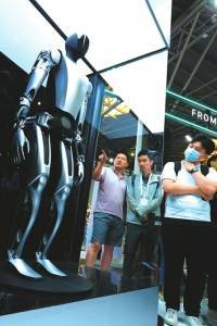 在2023世界人工智能大会上亮相的特斯拉机器人。 新华社发