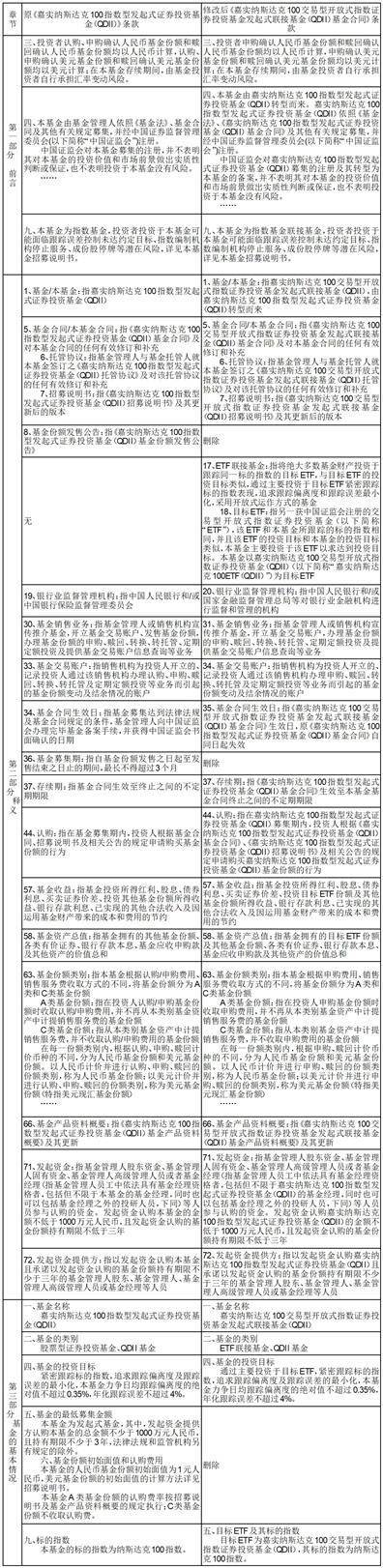 嘉实纳斯达克100指数型发起式证券投资基金(QDII)基金合同修订对照表