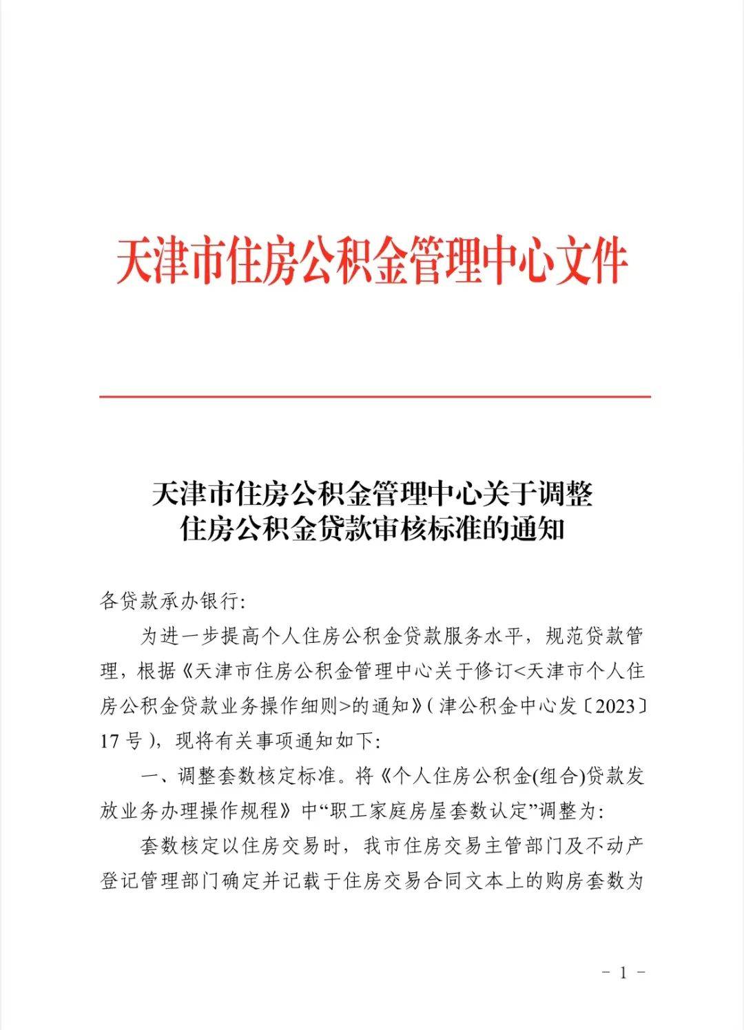 在调整套数核定标准方面,天津将《个人住房公积金(组合)贷款发放业务办理操作规程》中“职工家庭房屋套数认定”调整为:套数核定以住房交易时,天津市住房交易主管部门及不动产登记管理部门确定并记载于住房交易合同文本上的购房套数为准。