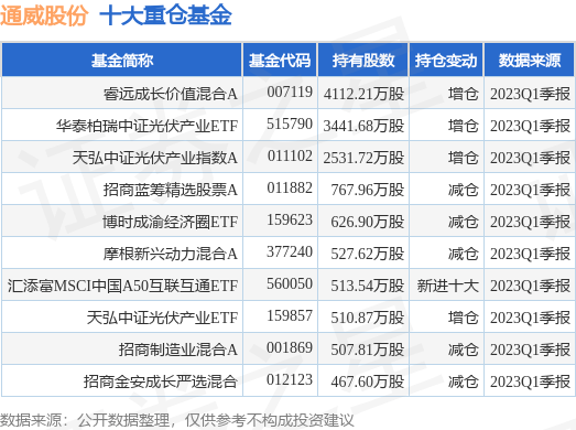 重仓通威股份的前十大公募基金请见下表: