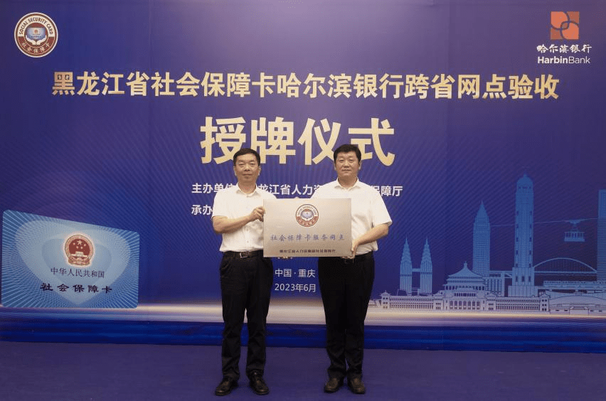 央广网哈尔滨7月13日消息(记者马俊玮)6月30日,黑龙江省人力资源和社会保障厅为哈尔滨银行重庆分行进行跨省社保卡服务网点授牌,在重庆工作、生活的黑龙江籍百姓可享受全流程的黑龙江省社保卡服务。