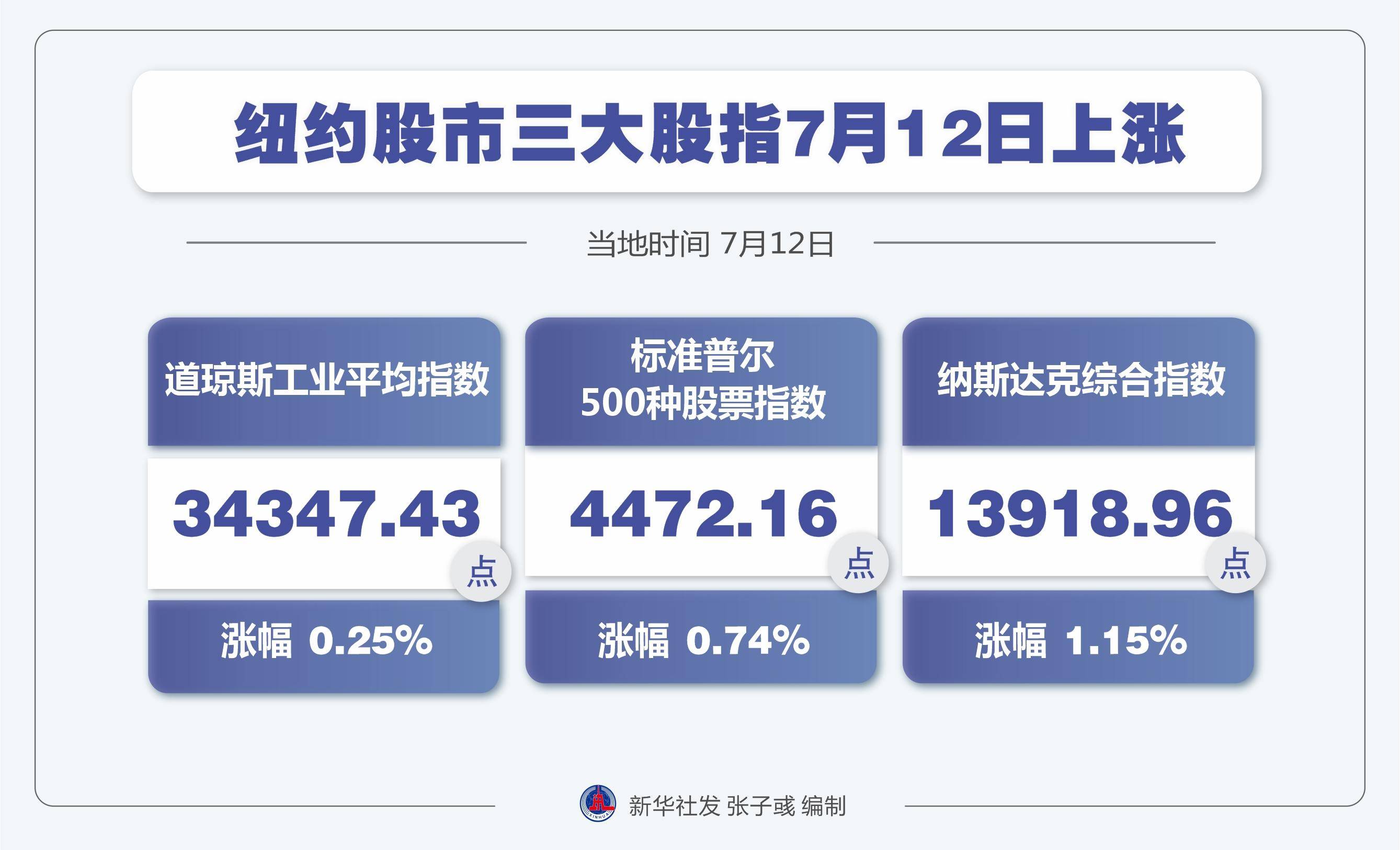 原标题:(图表)[财经·行情]纽约股市三大股指7月12日上涨