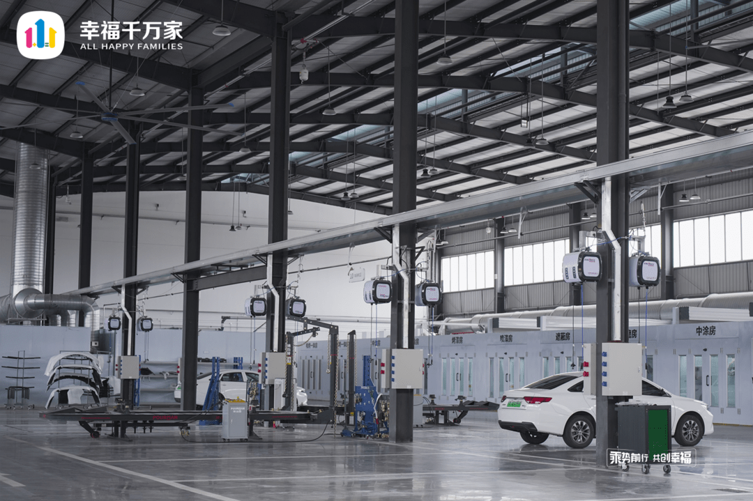据了解,幸福千万家成都旗舰店总占地 2.5万㎡,面积为目前全国最大。拥有机电维修工位 17 个,易易2.0换电站1座,充电桩数量 40 个,具备 50000 台次/年的机修保养接待能力。钣喷车间设置两条喷漆流水线,预计产能 8000 钣面/月。