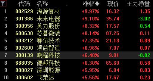 光伏储能等新能源赛道继续反弹,赛伍技术、海源复材双双涨停,迈为股份、东方日升、金辰股份、大业股份、银星能源等多股涨超5%。