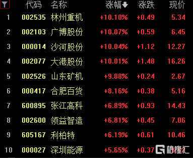 今日中报业绩预增股持续受追捧,林州重机、广博股份、沙河股份、大港股份、山东矿机5股涨停,合肥百货涨超8%,张江高科、领益智造等跟涨。