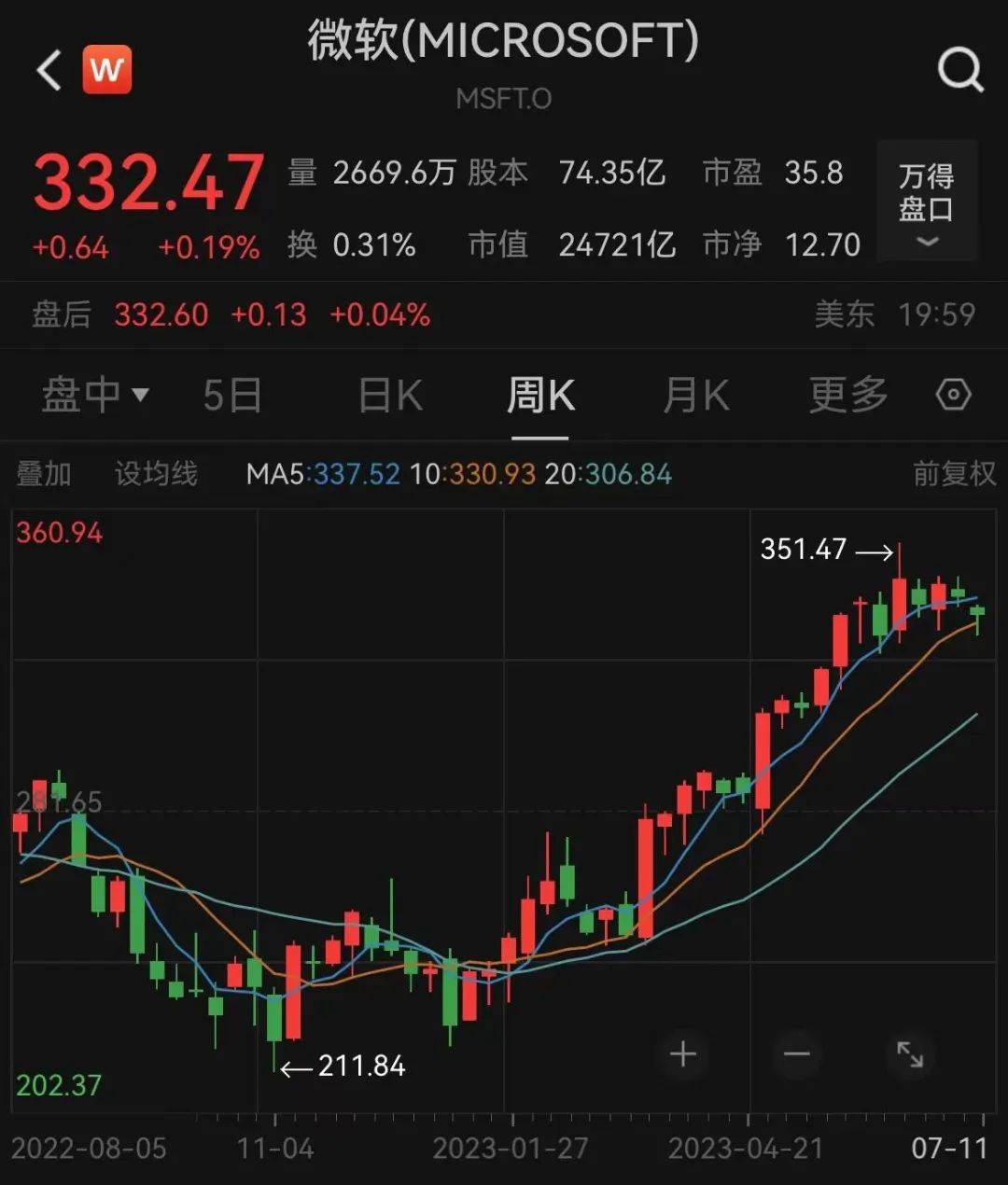 今年以来,因成功押注生成式AI业务,微软的股价一路高涨,年初至今累计涨幅接近40%,总市值达2.47万亿美元。