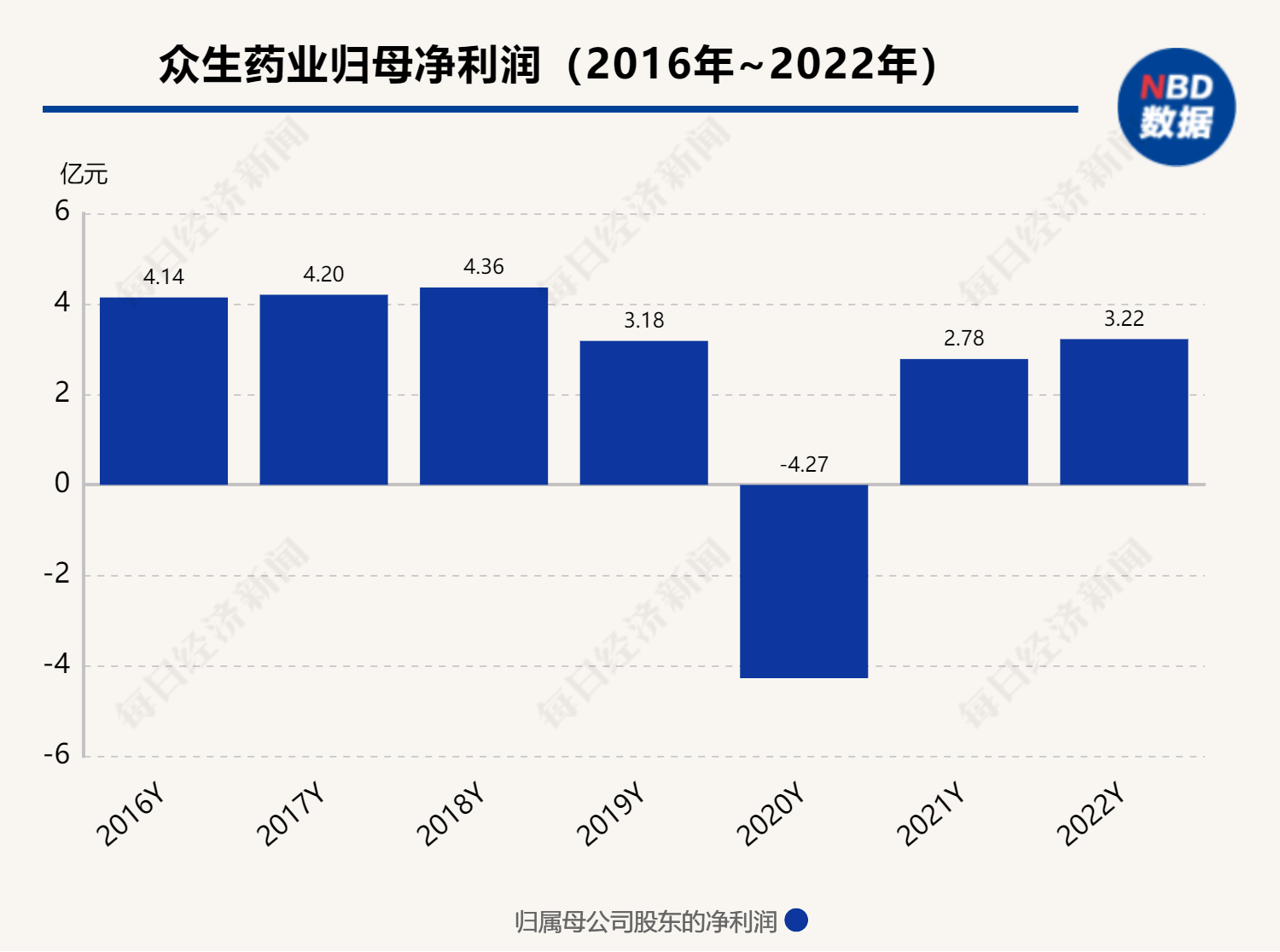 2022年,众生药业实现营收26.76亿元,同比增长10.17%,归母净利润为3.22亿元,同比增长16.00%。今年第一季度,公司营收为7.47亿元,同比增长10.50%,归母净利润为1.39亿元,同比增长86.86%,扣非后净利润为1.28亿元,同比增长1.47%。