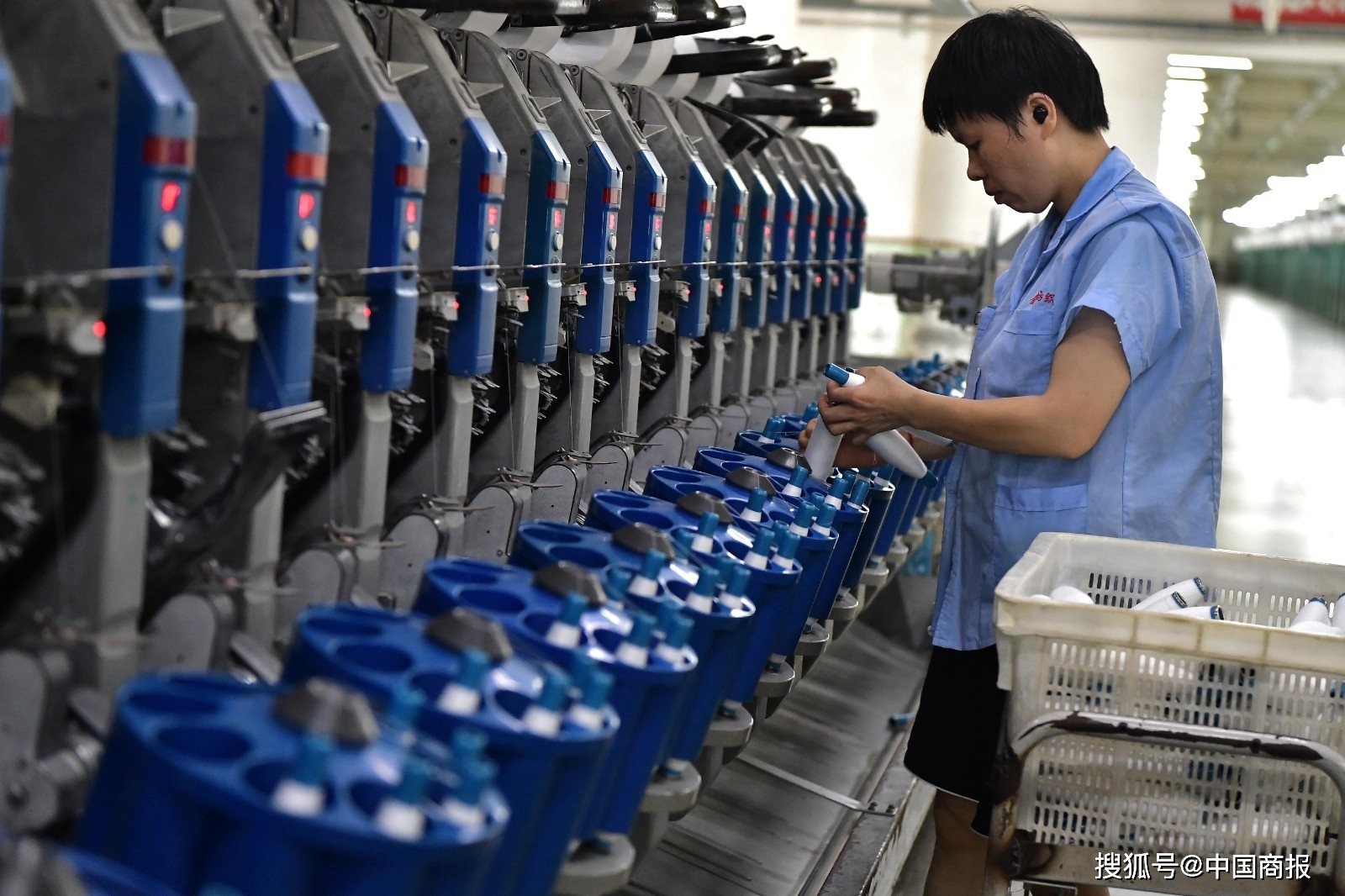 福建省福州市长乐区的一家纺织生产企业车间内,员工在抓紧生产。(图片由CNSPHOTO提供)