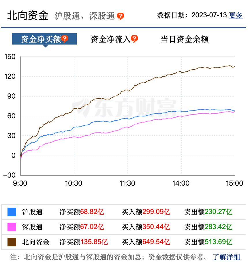 值得注意的是,今天这个消息,反而刺激北向资金大举买入A股。截至收盘,沪股通净买额高达68.82亿元,深股通净买额67.02亿元,沪深合计净买额135.85亿。