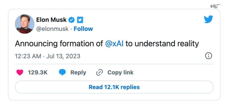 7 月 13 日,马斯克在 Twitter 上宣布了他在 AI 领域的最新动作:宣布了一家名为 xAI 的 AI 公司,目的却是要「理解宇宙的本质」。