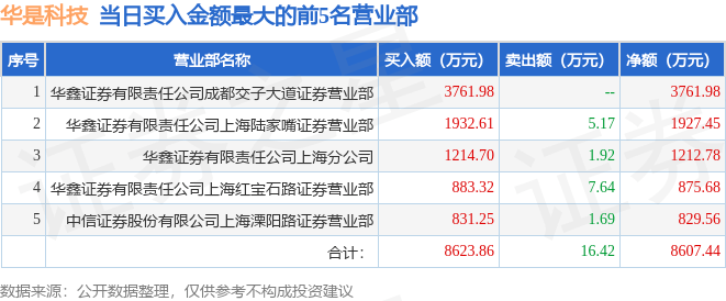 沪深交易所2023年7月13日公布的交易公开信息显示,华是科技(301218)因日涨幅达到15%的前5只证券登上龙虎榜。此次是近5个交易日内第1次上榜。