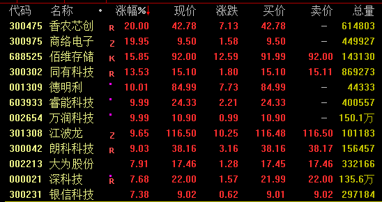 存储芯片概念今日再度走强,截至收盘,香农芯创、商络电子“20cm”涨停,佰维存储涨近16%,同有科技涨超13%,德明利、睿能科技亦涨停,江波龙涨近10%。