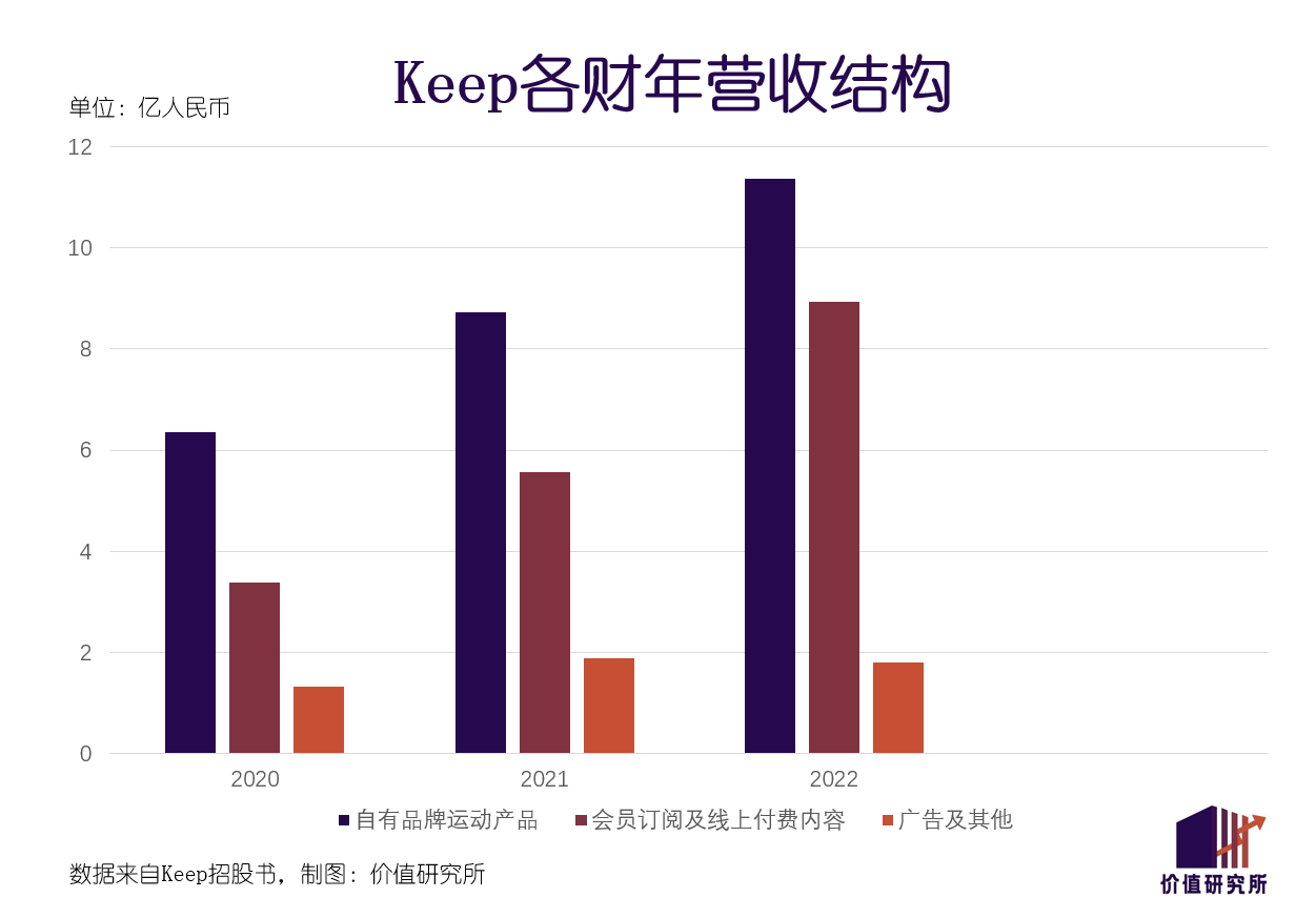 翻看其最新业绩则可以发现,硬件业务的地位在最近两个财年愈发重要。今年3月更新的招股书显示,2022财年Keep总营收为22.1亿元,同比增长36.6%。公司高层在招股书中强调,营收的增长得益于会员订阅、付费内容和自有品牌产品的收入增加。