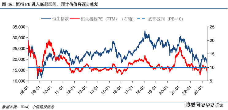 历史上来看,恒生指数在熊市中跌破10倍市盈是进入底部区域的特征。本轮今年3月港股估值在银行流动性危机的催化下再次跌破10倍,确认进入底部区间,5月美债危机的影响下港股估值继续向下突破9倍,港股底部特征已经较为明确。(来源:中信建投证券)